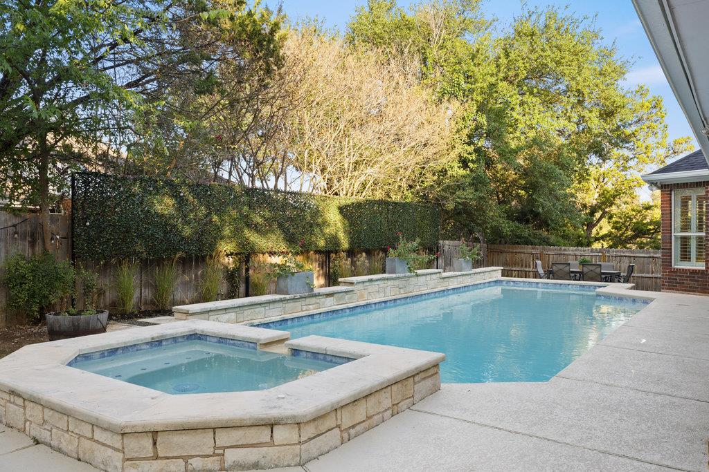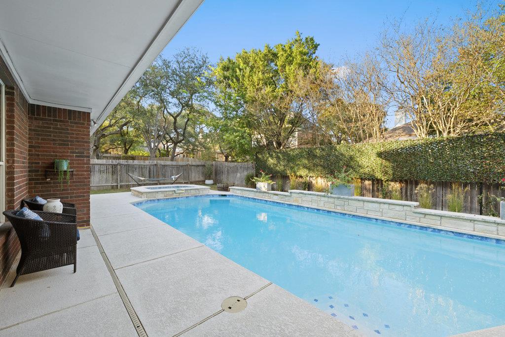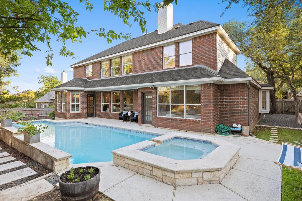 Out back, the sense of privacy is undeniable! The recently refinished patio is ready for dinners outdoors, while the newly resurfaced pool and spa shimmer against a backdrop of mature foliage.The large front yard offers another area to play and ride bikes, while a new roof and fresh xeriscape perfect the exterior. The best part? The location-blocks from the park and greenbelt, minutes from HEB, and zoned to Laurel Mountain Elementary, Canyon Vista Middle, and Westwood High.