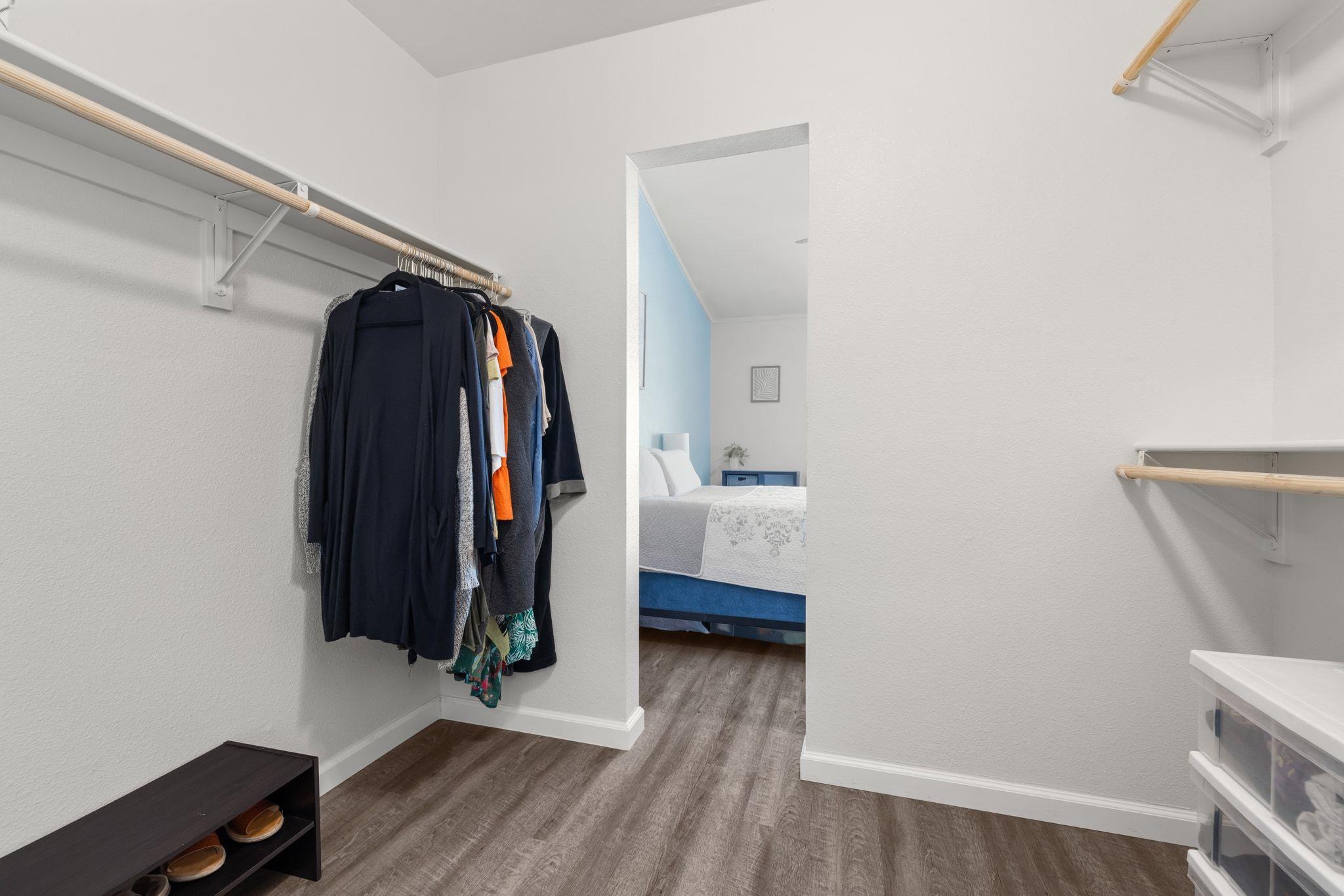 Upstairs, the spacious primary bedroom includes a custom-built walk-in closet and direct access to the full bath, with the second bedroom just down the hall.