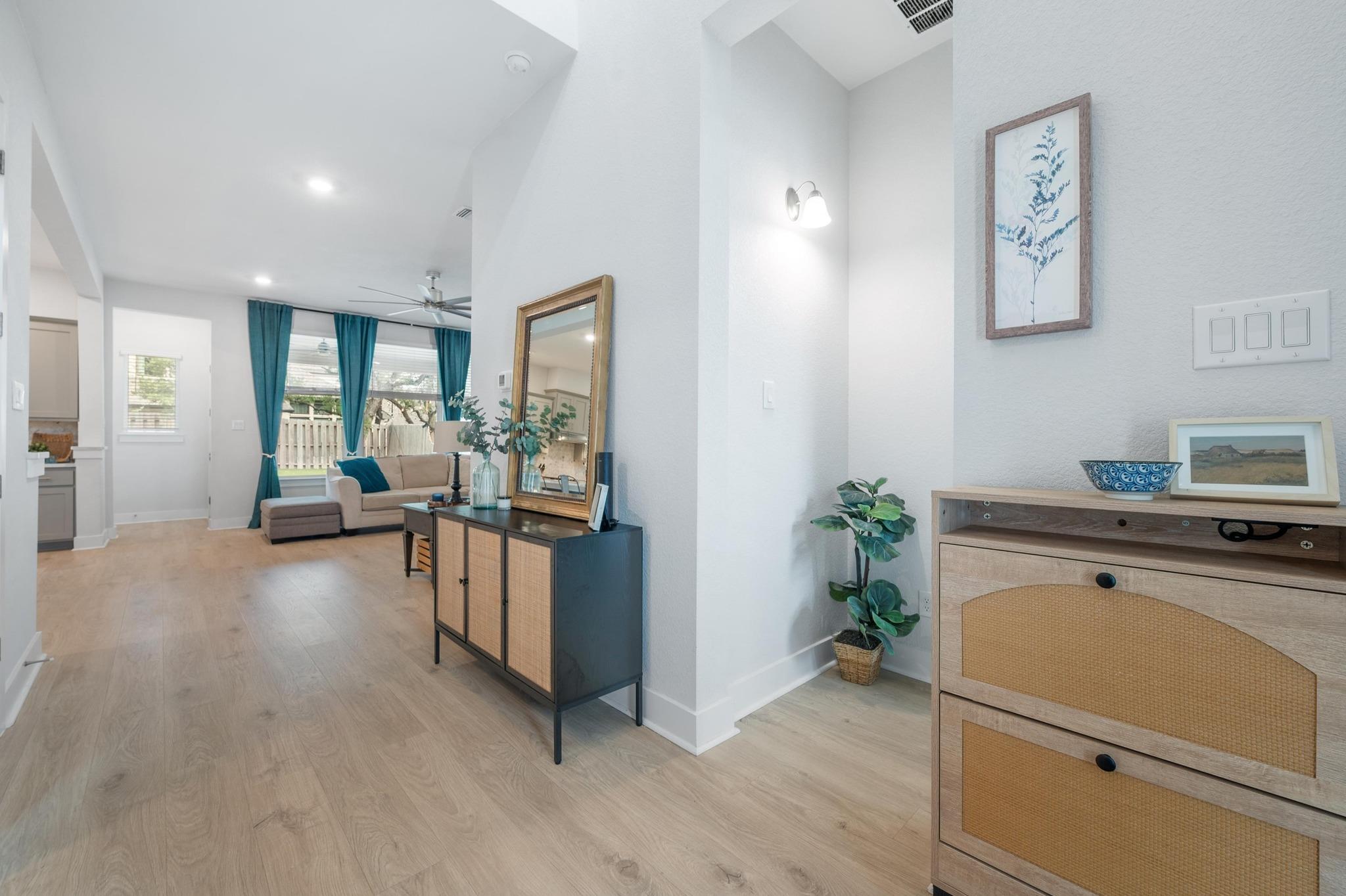 Designed for Living, Built for Memories! Tucked away on a quiet cul-de-sac in Leander's award-winning Bryson community, this stunning 5-bedroom, 4.5-bathroom home is more than a place to live, it's where life unfolds beautifully. With 3,064 sqft of thoughtfully designed space, every detail invites comfort, connection, and effortless entertaining. At the heart of the home lies a kitchen that inspires. The rare double island isn't just a feature, it's a gathering place for holiday feasts or casual Sunday breakfasts. Open to the living and dining areas, it's a space that feels alive with possibility, whether hosting friends or enjoying quiet family nights in. The floor plan balances luxury and practicality. The main floor offers a primary serene suite retreat with a spa-like bathroom and generous closet, and an additional private secondary bedroom with ensuite is perfect for guests, an office, or multigenerational living. Upstairs, the game room provides a hub for movie marathons or laughter-filled nights, and oversized secondary bedrooms with walk-in closets, offer comfort and privacy. One of the upstairs secondary bedrooms features a private ensuite, ideal for teens or long-term visitors. Step outside to a backyard designed for easy living. Maintenance-free artificial turf and a spacious covered patio make outdoor dining, relaxing, or entertaining effortless. Life in Bryson is about more than your home, with a full-time activity director, resort-style amenities, parks, trails, and year-round events, it's a place where neighbors become friends. A dog park just steps away makes four-legged family members feel at home too. Conveniently located near St. David's Hospital, Northline, Cap Metro rail and bus, award-winning Leander ISD schools, and endless shopping and dining, this home perfectly balances tranquility and accessibility. Beautifully maintained, thoughtfully designed, and brimming with lifestyle opportunities, this Bryson gem is ready to welcome you home.